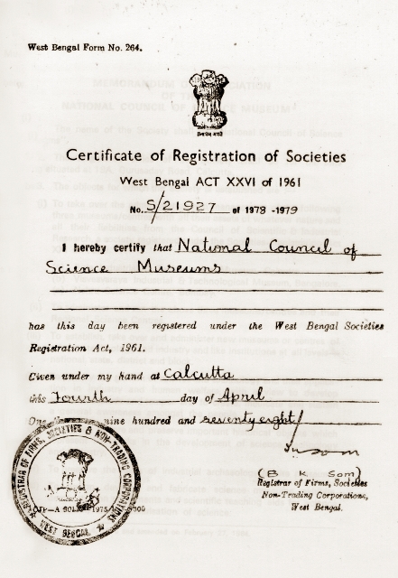 National Council of Science Museums (NCSM) was registered as a society on April 4, 1978. Two Science Museums namely Birla Industrial and Technological Museum (BITM), Kolkata and Visvesvaraya Industrial and Technological Museum (VITM), Banglore and developing Nehru Science Centre, Mumbai were brought under the control of NCSM.