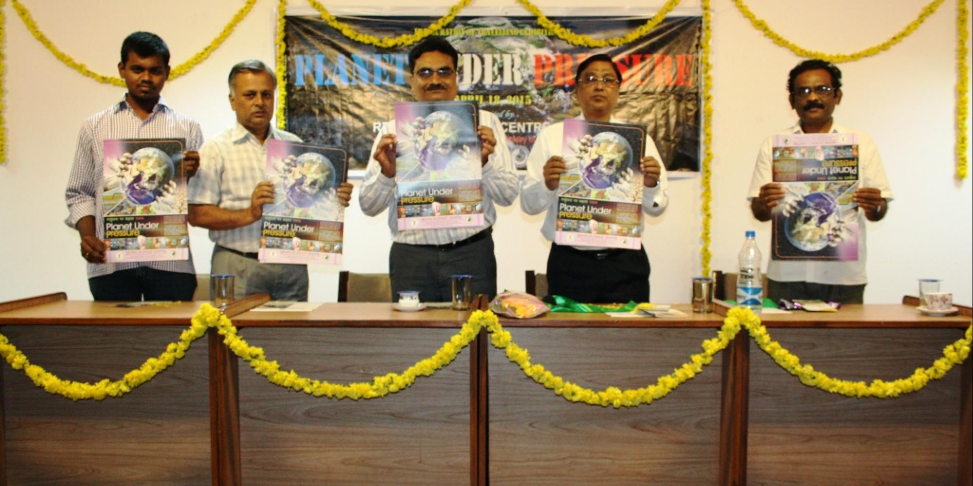 A travelling exhibition on ‘Planet Under Pressure’ was inaugurated by Prof. W Rajendra, Vice-Chancellor, Sri Venkateswara University, Tirupati at Regional Science Centre, Tirupati on 18th April 2015. A poster and a brochure was also released on the occasion. In his inaugural speech, Prof Rajendra emphasized on the various types of pressures on the planet Earth and how it is affecting the mankind. As the pressure is mounting by each passing day he also stressed on the need for a quick response for all these issues of the planet otherwise life forms may not continue in the same form on the planet like its ancestors. He also distributed prizes to the winners of ‘Planet Quiz’.