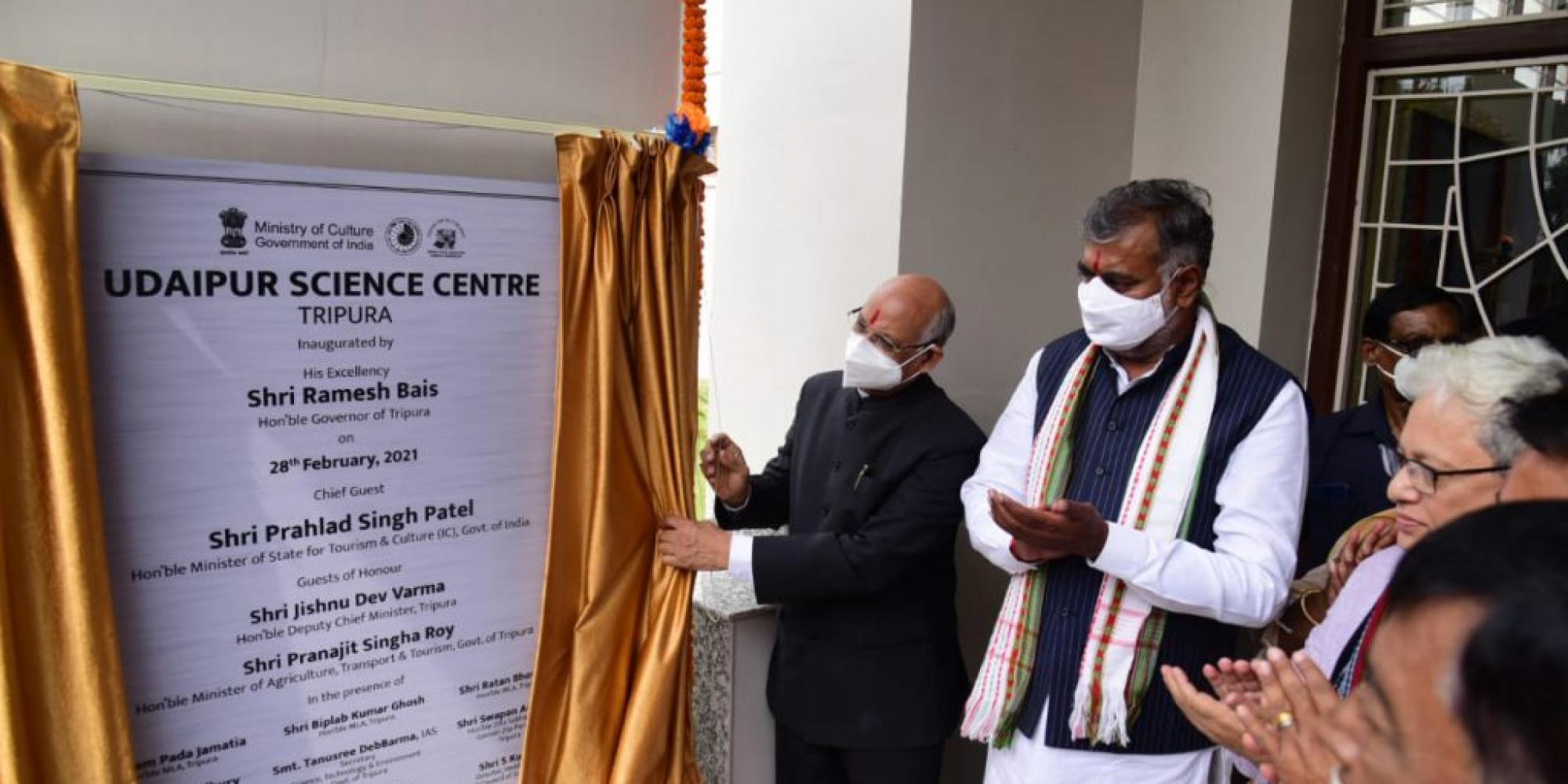Udaipur Science Centre, Tripura was inaugurated by Mr. Ramesh Bais, Hon’ble Governor of Tripura on February 28, 2021 in presence of Shri Prahlad Singh Patel, Hon’ble Minister of State for Tourism & Culture (I/C), Govt. of India, Shri Jishnu Dev Varma, Hon’ble, Dy. CM, Tripura and Shri Pranajit Singha Roy, Hon’ble Minister of Agriculture, Transport & Tourism, Govt. of Tripura. The Centre was developed by NCSM in collaboration with Tripura State Council for Science & Technology, Govt. of Tripura. The Centre houses two thematic galleries on ‘Appropriate Technology: North-East India’ & ‘Fun Science’ and facilities like outdoor Science Park, Taramandal (Inflatable Dome Planetarium) & Science Demonstration Hall, Conference Room, Exhibit development area, etc.