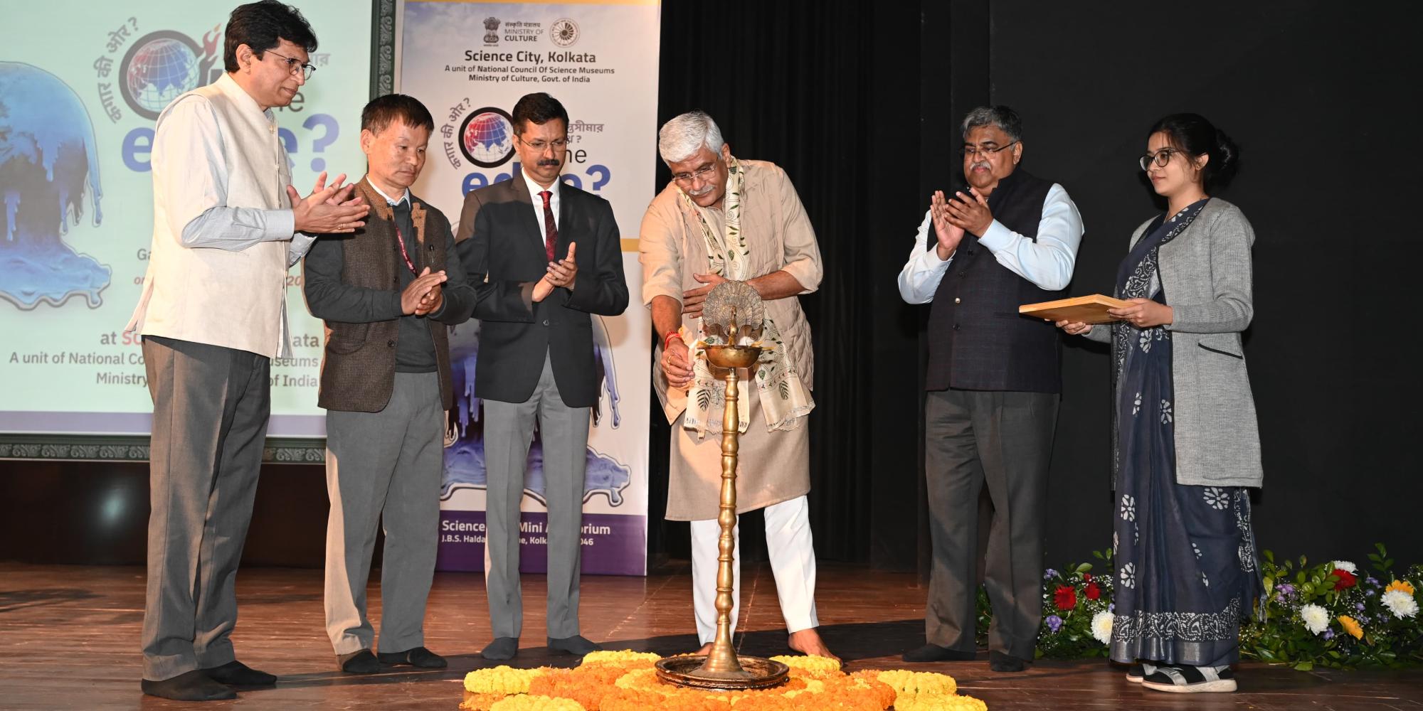 Today, a state-of-the-art gallery on Climate Change titled "On the Edge?" was inaugurated by Shri Gajendra Singh Shekhawat, Hon’ble Union Minister of Culture and Tourism, Government of India, at Science City, Kolkata, in the august presence of Dr. A. A. Mao, Director, Botanical Survey of India; Shri Sanjay Kaul, Joint Secretary, Ministry of Culture, Govt. of India; Shri A. D. Choudhury, Director General, NCSM; Shri Samarendra Kumar, DDG, NCSM; Shri Anurag Kumar, Director, Science City, Kolkata; and other distinguished guests.